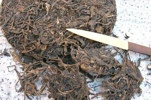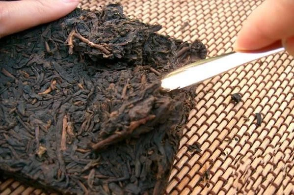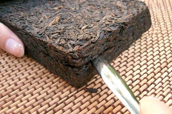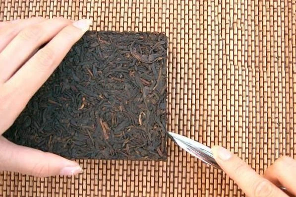 3.稍用力,用茶刀使茶磚表面的茶層脫開。